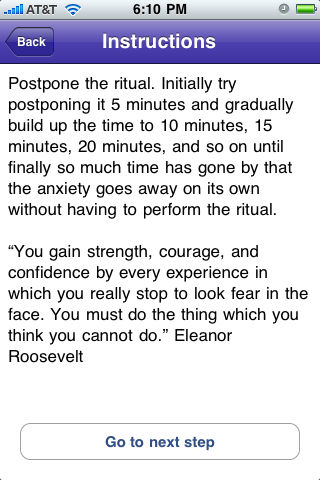 La aplicación iCounselor propone recopilar los datos del paciente y evaluarlos en una especie de barómetro, donde se valora el usuario valora con un sentimiento frente a una obsesión. El programa te calificará de soportable a irresistible, y según sea el resultado, otorgará consejos e instrucciones dictadas anteriormente por un profesional que ayuden a controlar la ansiedad ante la obsesión.